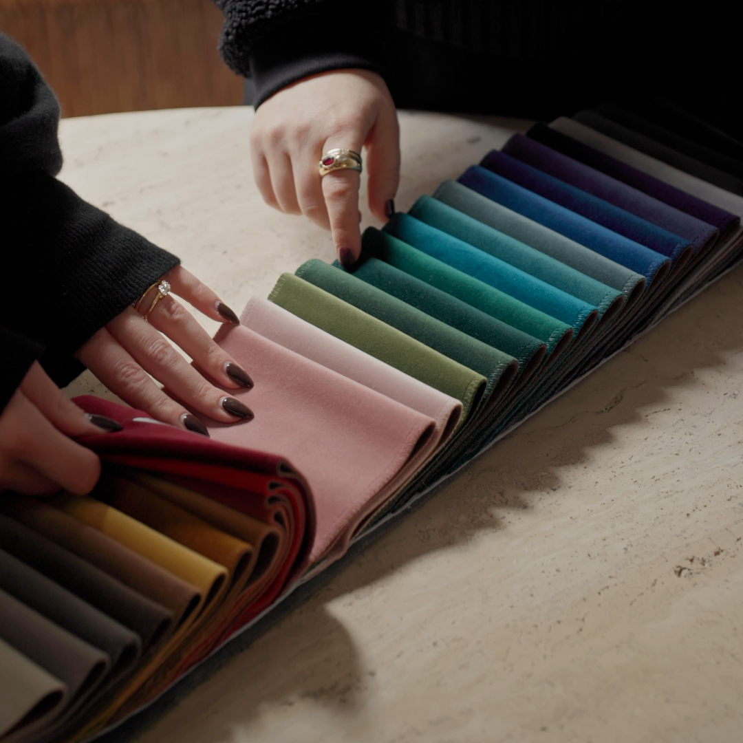 Please contact us at info@racheldonath.com to order complimentary material swatches. The entire RD Swatch Collection is available at a cost, and is fully redeemable on your next purchase. Contact us at info@racheldonath.com for more information.